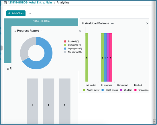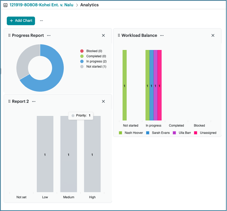 Every member of a Stream can create their own custom analytics dashboard for that Stream. The Analytics dashboard is member-specific and visible only to that member. Members can create various chart types for project visibility and tracking.